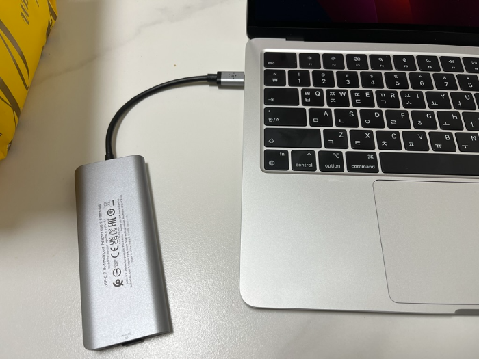 나는 맥북 에어 M2를 사용중이다. 맥os에서는 USB커넥터가 아닌 SD카드를 통해 음원을 넣어줘야 한다. 세이펜 측면에 장착되어 있는 SD카드를 분리해 SD카드 리더기를 이용해 가지고 있는 맥북과 연결한다. 나는 이 작업을 해주기 위해 SD리더기를 포함하고 있는 '벨킨 멀티허브'를 구입했다.