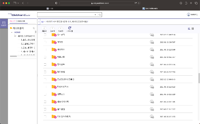 웹하드 로그인 페이지가 나오면 이전 창에서 확인한 아이디와 비밀번호를 입력하고 로그인을 한다. 아이디와 비밀번호는 매번 바뀐다고 하니 계속 기억할 필요는 없을 것 같다.
