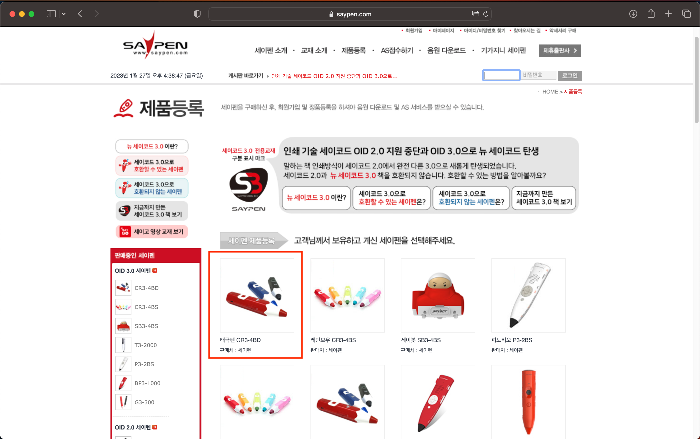 먼저 세이펜 홈페이지에서 회원가입을 해야 한다. 그리고 바로 제품등록을 해주면 되는데, 본인이 구매한 세이펜 제품을 선택하고 세이펜에 붙여져있는 시리얼넘버를 입력하면 간단하게 등록이 완료된다. 나는 태극펜을 구매해서 제일 처음에 나오는 제품을 선택했다.