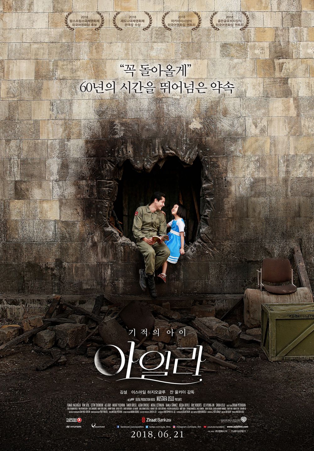 1950년 6월 평화로운 마을에 갑작스레 포격이 쏟아진다. 인민군이 남침을 시작한 것이다. 어린 소녀만이 혼자 살아남고 마을 주민들은 모두 죽어가고 있다. 이 소식은 평화롭게 살고 있는 터키의 '슐레이만'에게까지 전달된다. 슐레이만의 직업은 군인이다. 그는 한반도로 가는 항해길에 오른다. 그리하여 평안도 군우리에 터키군이 도착한다. 이곳에서도 곧 전쟁이 끝날 것 같다는 희망 섞인 소문뿐이다. 인기척이 들려 수색해보니 그 안에 어린 소녀 하나만 생존해 있었다. 소녀를 마주한 슐레이만은 그 아이가 가족을 모두 잃은 것을 보고 데려가기로 한다. 슐레이만과 동료들은 소녀에게 이름을 지어주기로 한다. 소녀의 얼굴이 달처럼 동그랗다는 의미에서 '아일라'라는 이름을 지어준다. 하지만 슐레이만은 알고 있었다. 언젠가는 아일라와 헤어져야 한다는 것을 말이다. 어쩔 수 없이 아일라와 헤어져야만 하는 슐레이만은 돌아올 거란 약속만을 남긴 채 어렵게 발걸음을 뗀다. 그렇게 슐레이만은 고향으로 돌아왔지만 애인이었던 '누란'은 이미 다른 사람과 약혼한 뒤였다. 새로운 삶을 찾아 떠난 슐레이만은 아버지가 정해준 여인과 결혼을 하고 이스탄불에 정착한다. 일상을 이어가는 와중에도 슐레이만은 아일라의 소식을 듣기 위해 노력한다. 그의 마음을 이해하는 건 아내 '니멧'이다. 그녀의 적극적인 도움에도 불구하고 아일라를 찾는 일은 간단하지 않아 보인다. 그렇게 47년이 흐르고 1999년 슐레이만이 살고 있는 이스탄불에 큰 지진이 발생한다. 집이 무너질지 모르는 상황에서도 슐레이만은 아일라의 사진을 챙긴다. 그리고 가장 기다리던 소식이 들려온다. 2010년 4월, 드디어 슐레이만은 아일라를 만나기 위해 서울을 찾는다. 변해버린 서울을 보며 슐레이만은 감회에 젖는다. 다음 날 슐레이만은 앙카라공원에서 아일라를 기다린다. 아버지로서 한 약속을 지키러 온 슐레이만은 60년 만에 그 약속을 지키는 데 성공한다.