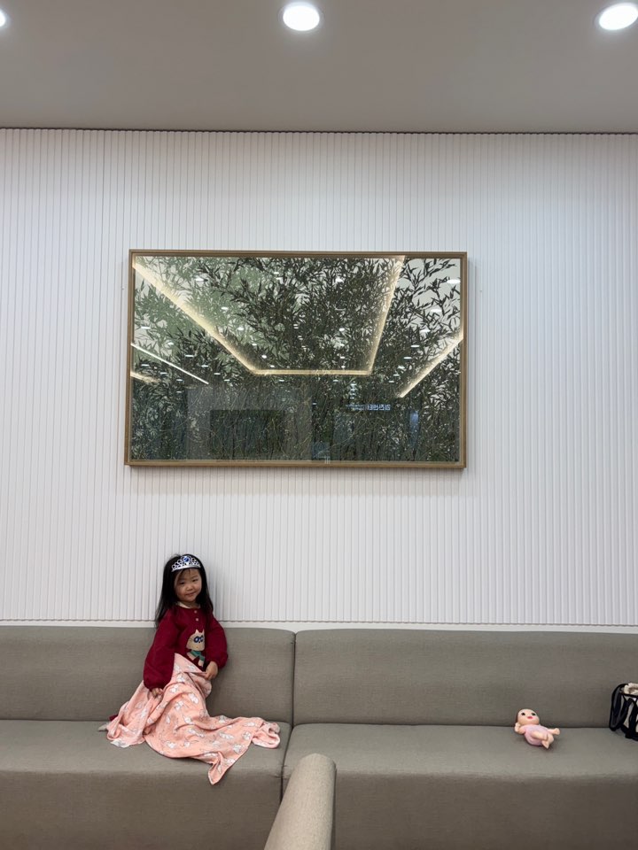 아마 다음 방문때는 건강검진이 되지 않을까 싶습니다. 저는 이번에 5살이 된 첫째 아이와 방문했는데, 첫째 아이가 보기에도 병원 인테리어가 예뻐 보였나 봅니다. 병원이 예쁘다고 계속 이야기를 하더라구요. 마지막으로 병원 대기중에 찍은 저희 첫째 아이 사진을 공유하며 포스팅을 마치겠습니다. 병원이라고 말 안하면 갤러리 같아서 한 장 찍어주었습니다^^