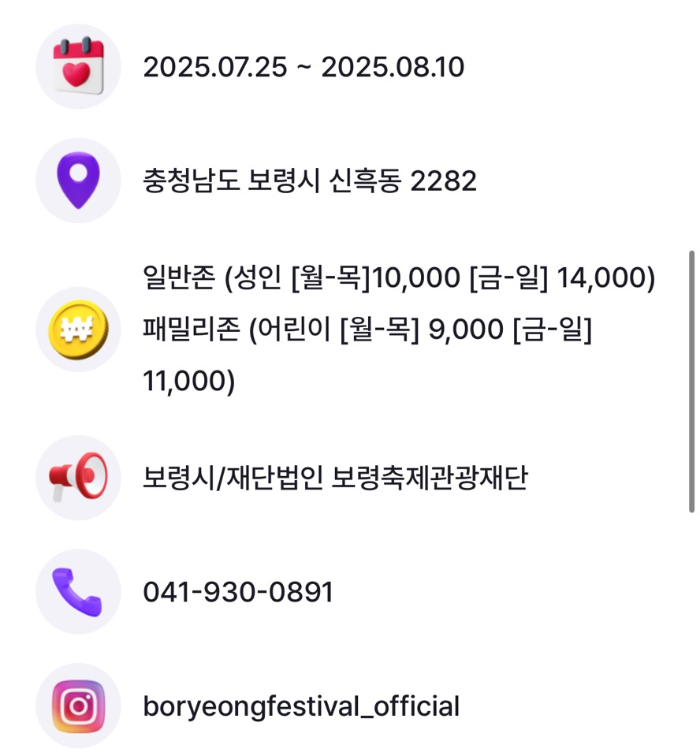 자가용 이용 시에는 보령시에서 운영하는 임시 주차장 및 셔틀버스를 활용할 수 있습니다.
